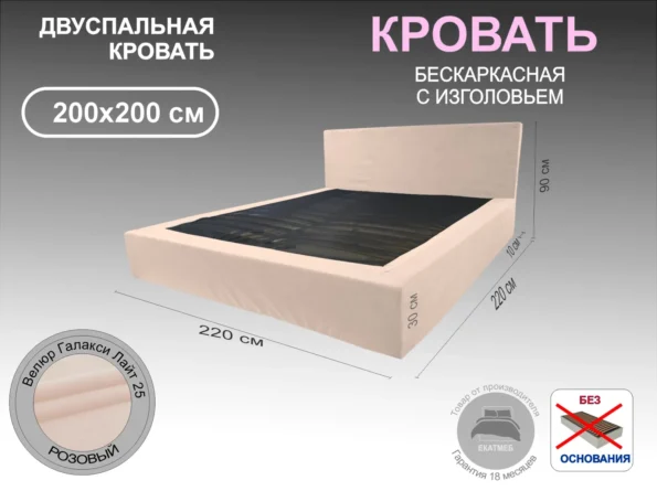 В наличии Кровать Бескаркасная, 200×200, бескаркасное, Велюр Галакси лайт 25-светло розовый, Ножки Без ножек Чехол на царгах НЕ съемный, Упаковка в картон,.
