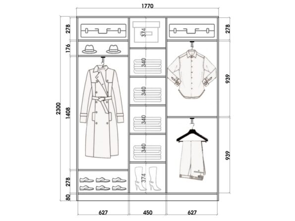 Благодаря большому количеству полок имеет достаточно места, чтобы расположить весь ваш гардероб: сложенную одежду, головные уборы и обувь на полках. На штанге можно аккуратно разместить вешалки с брюками, юбками, футболками, рубашками и т.д. Так же есть место под коробки. Ниши спроектированы таким образом, чтобы вы могли легко найти нужную вещь при этом обеспечить бережное хранение. Разработана большая линейка цветов , в том числе самые трендовые.Широкая линейка размеров под ваши нужды. Преимущества: Экологичная плита ДСП класс E1. Собственная система раздвижных дверей FUTURUM обеспечивает тихий, плавный ход. Надежный алюминиевый профиль. Ударопрочное зеркало нового поколения Mirox 3G. Безопасность вас и ваших детей. Прочная, аккуратная и эстетичная кромка ПВХ. Срок гарантии на изделие: 18 месяцев.